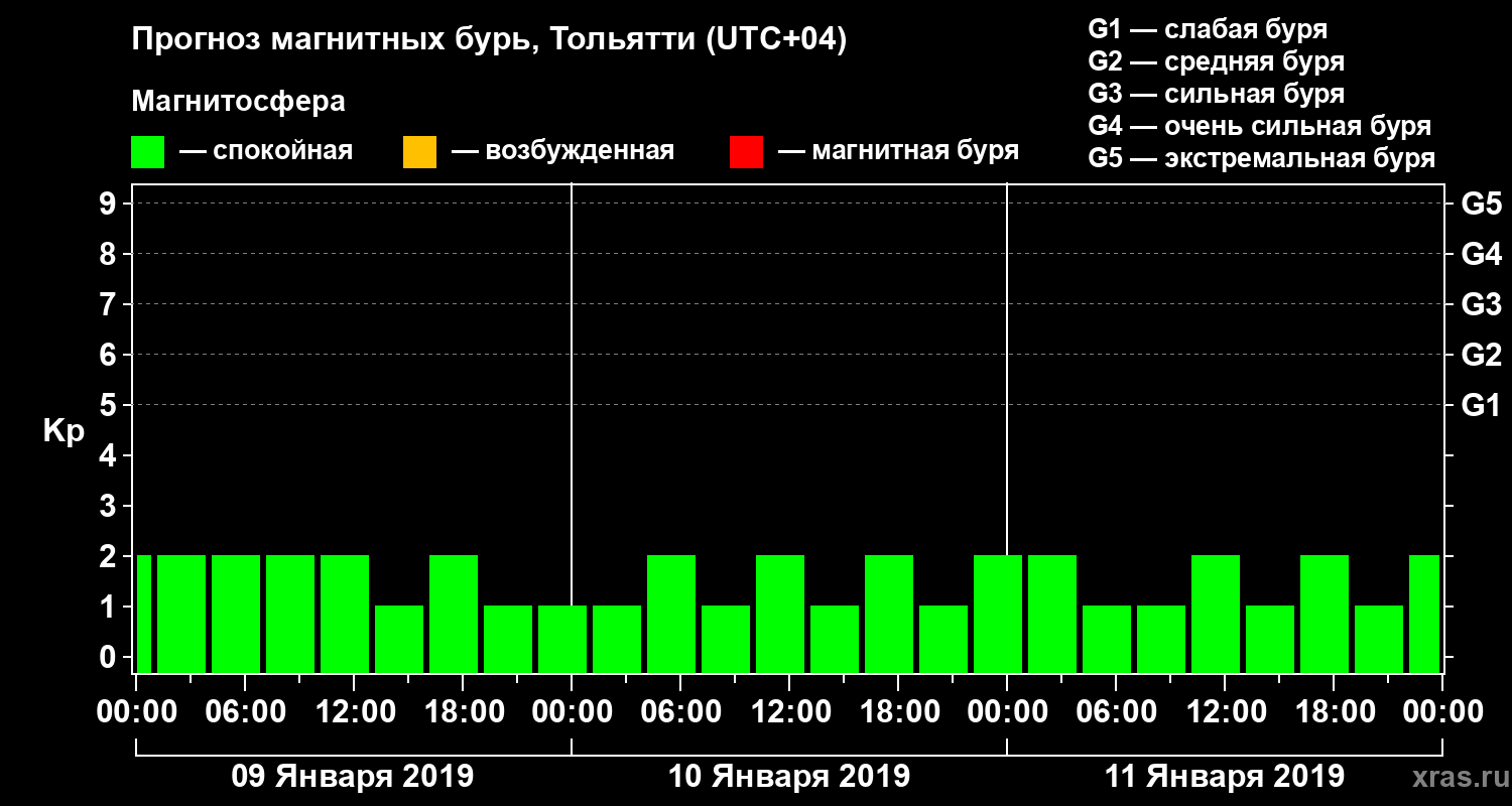 Прогноз магнитных бурь Тольятти — 9 января 2019 года