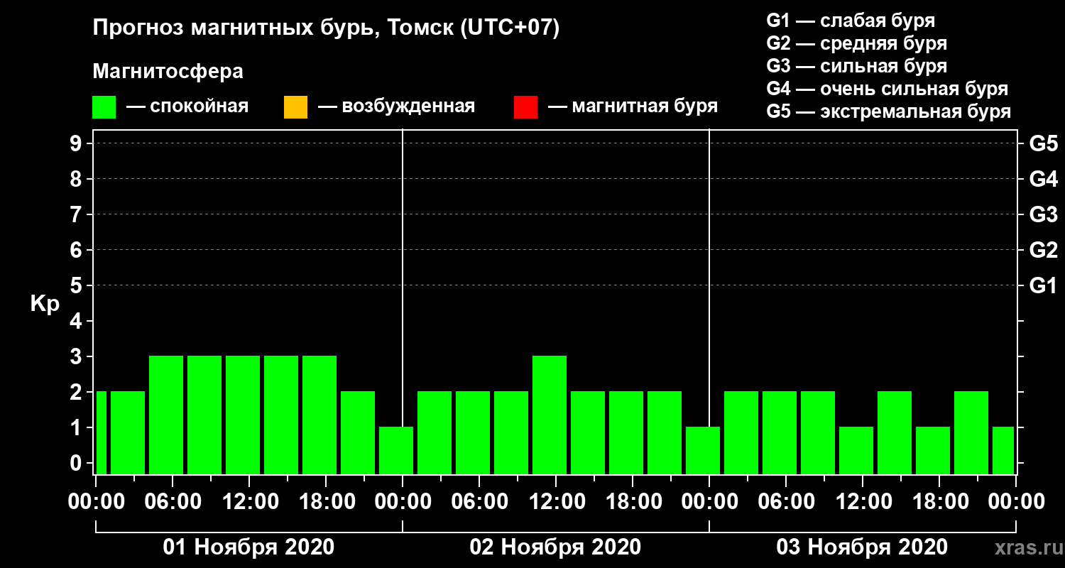 Прогноз магнитных бурь в Томске — 1 ноября 2020 года