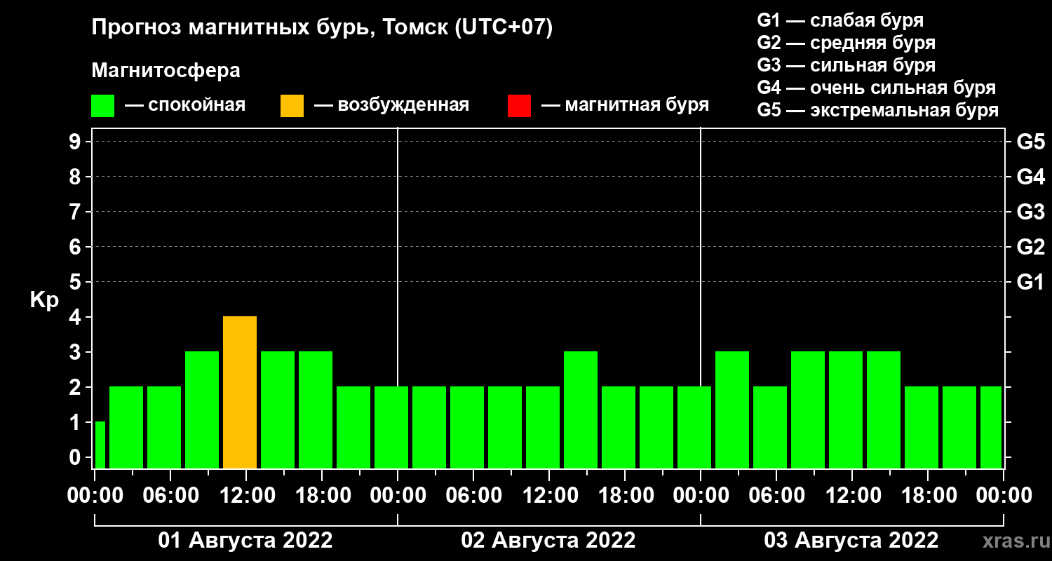 Прогноз магнитных бурь в Томске на 1 августа 2022 года