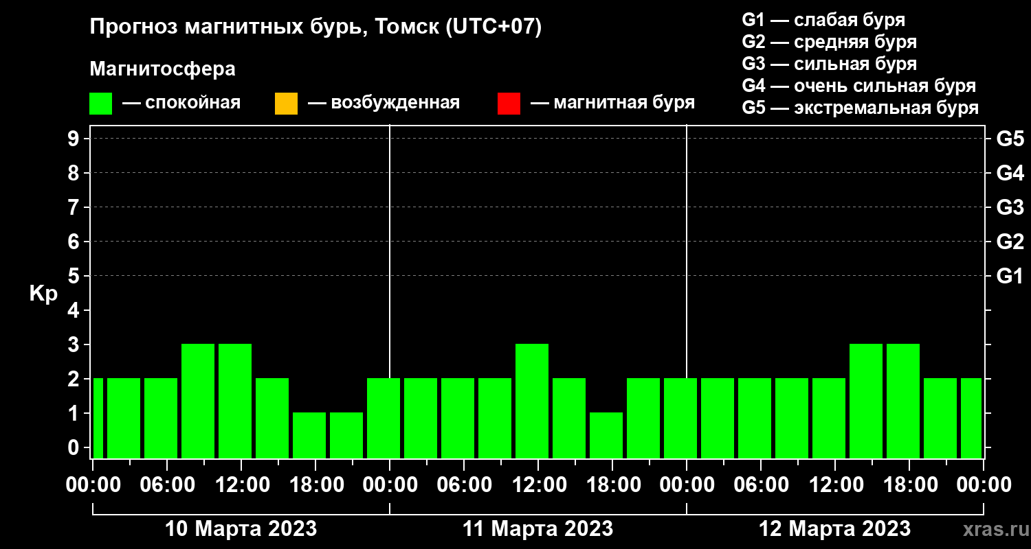Прогноз магнитных бурь в Томске на 10 марта 2023 года