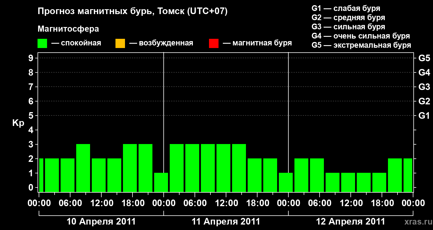 Прогноз магнитных бурь в Томске — 10 апреля 2011 года