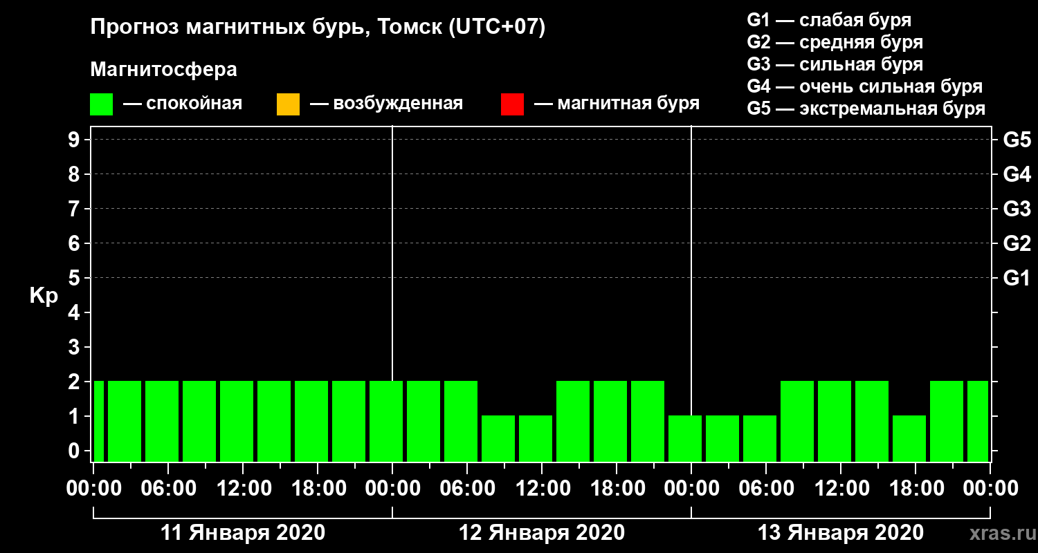 Прогноз магнитных бурь в Томске на 11 января 2020 года