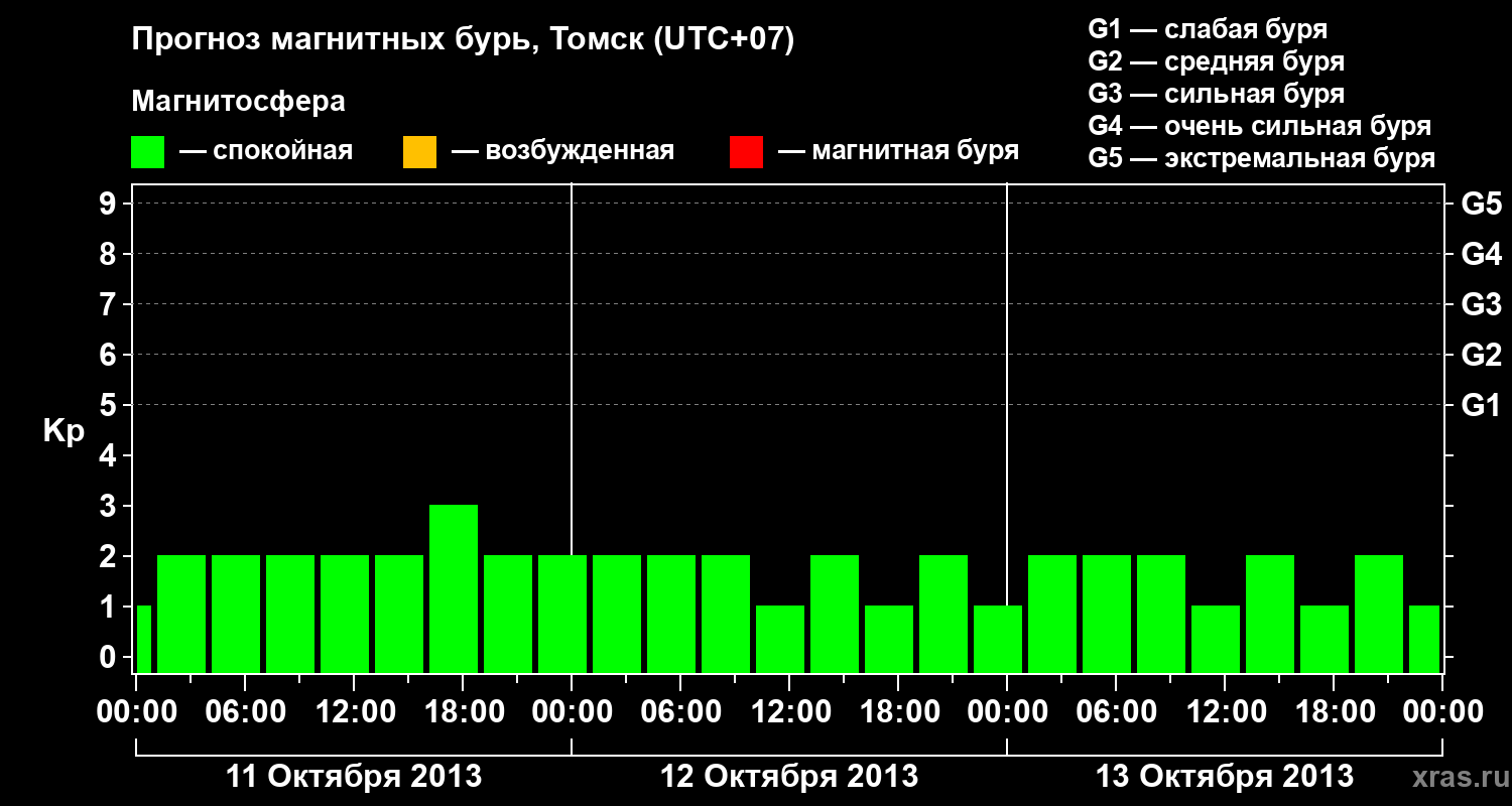 Прогноз магнитных бурь в Томске на 11 октября 2013 года