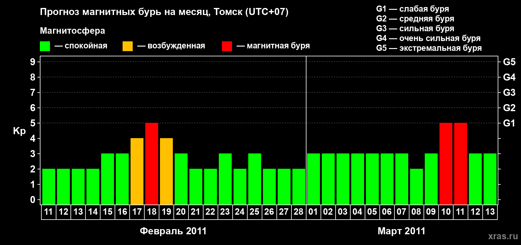 Прогноз магнитных бурь в Томске — 11 февраля 2011 года