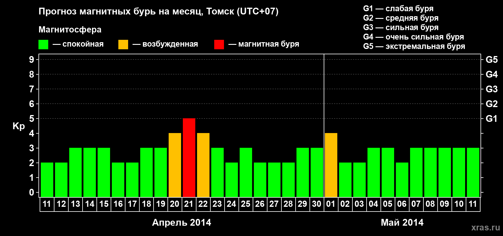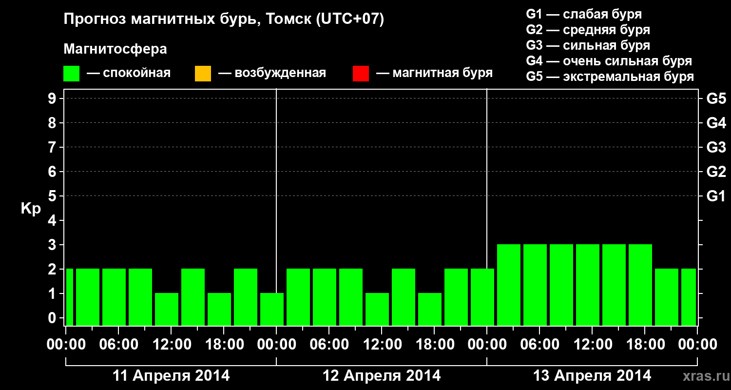 Прогноз магнитных бурь в Томске — 11 апреля 2014 года