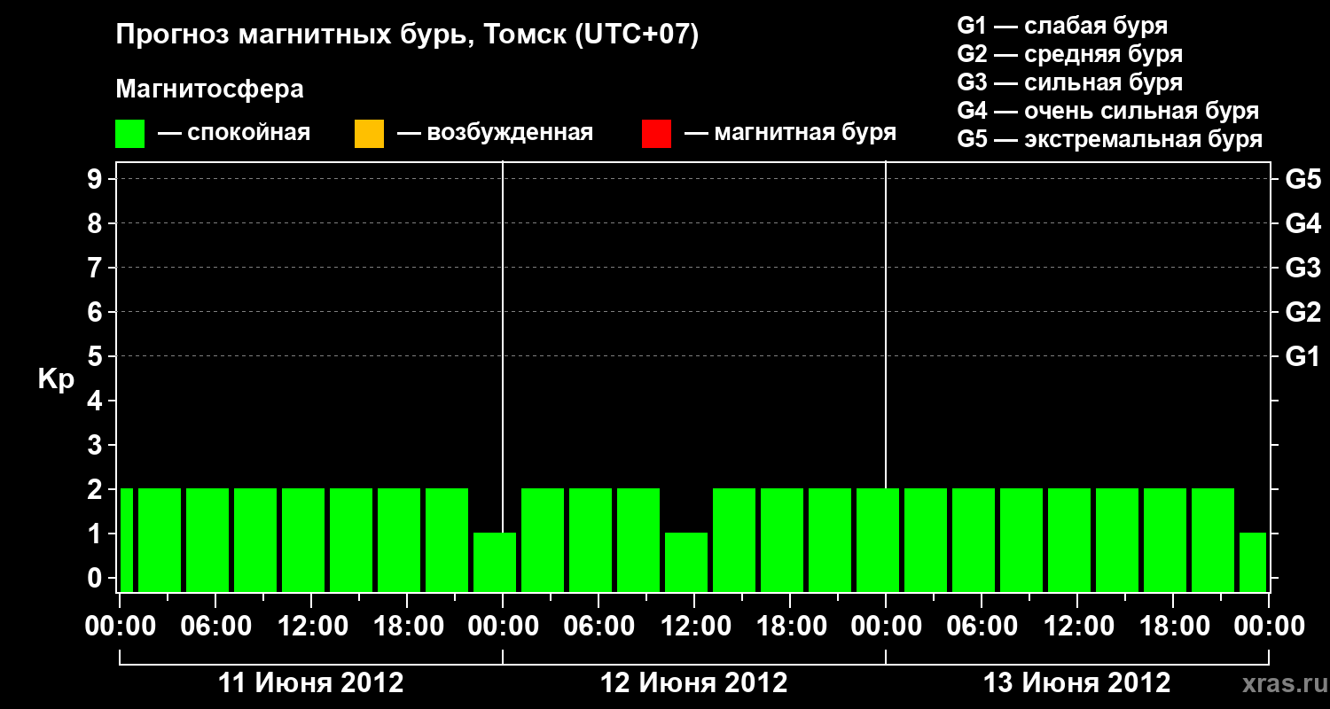 Прогноз магнитных бурь в Томске — 11 июня 2012 года