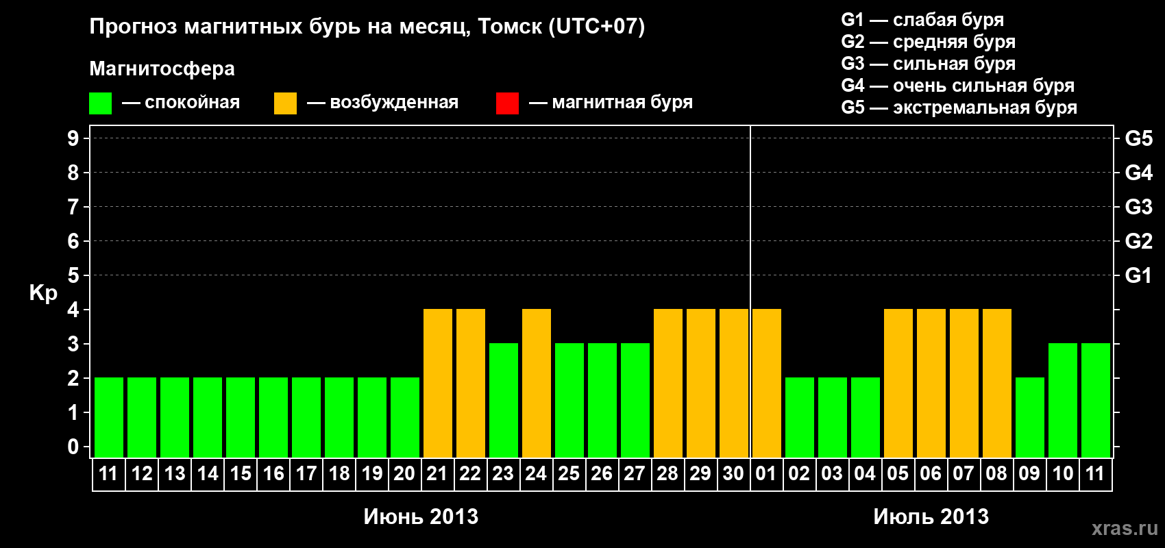 Прогноз магнитных бурь в Томске — 11 июня 2013 года