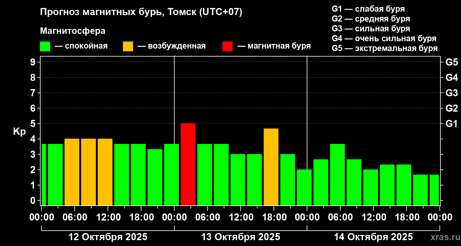 Прогноз магнитных бурь в Томске — 12 октября 2025 года
