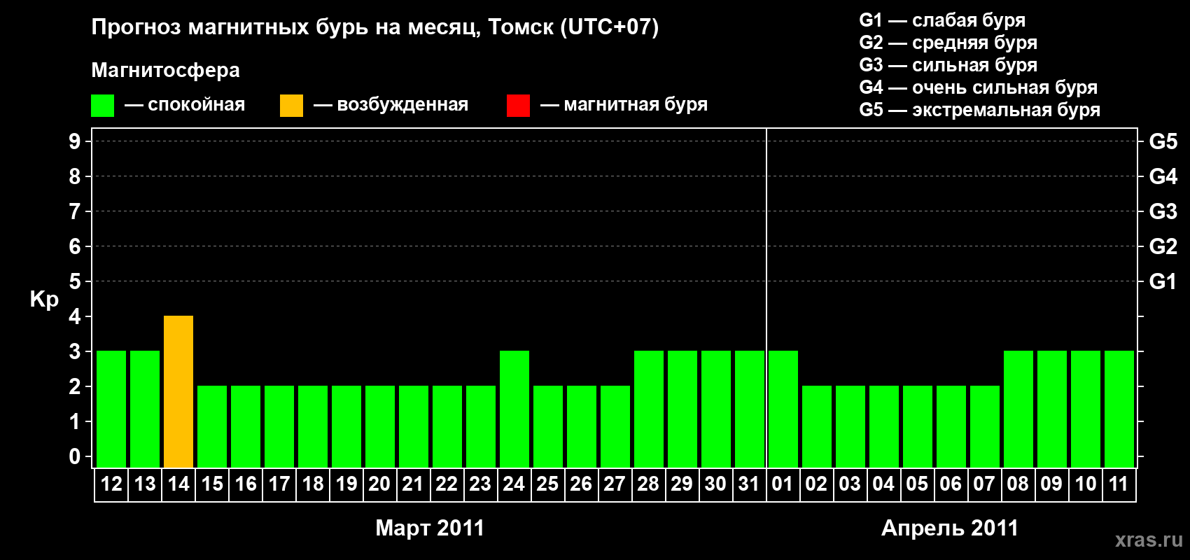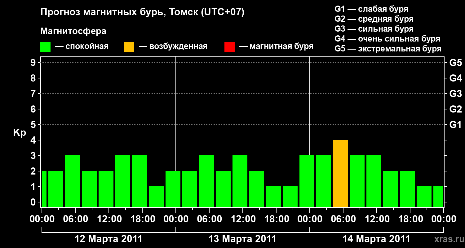 Прогноз магнитных бурь в Томске — 12 марта 2011 года
