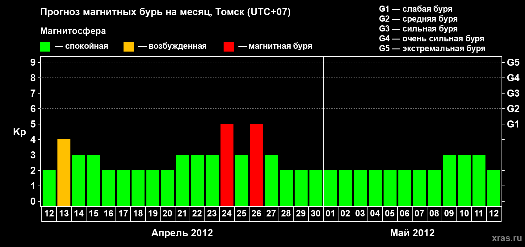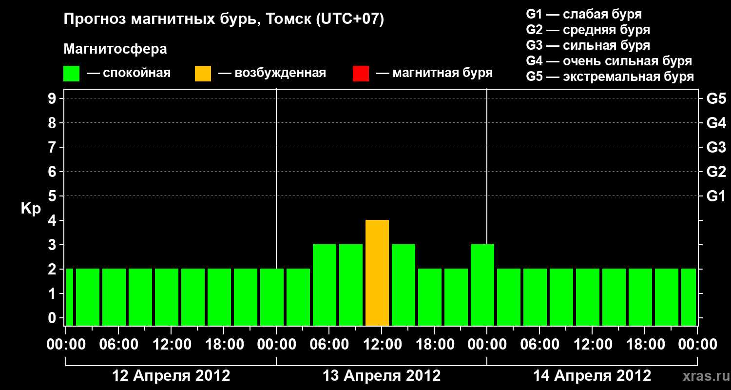 Прогноз магнитных бурь в Томске — 12 апреля 2012 года