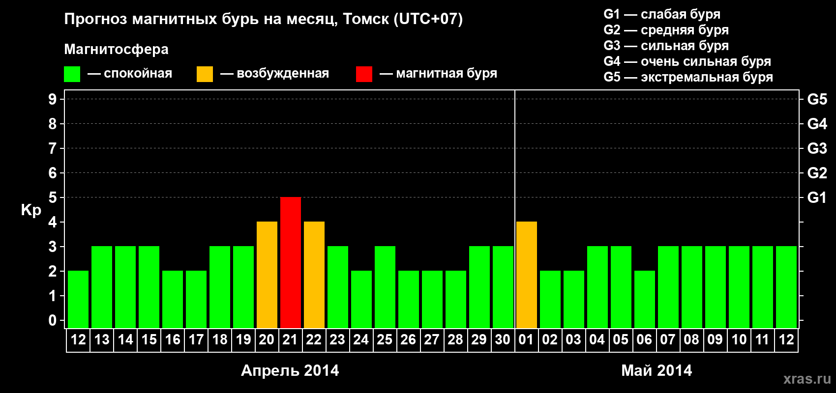 Прогноз магнитных бурь в Томске — 12 апреля 2014 года