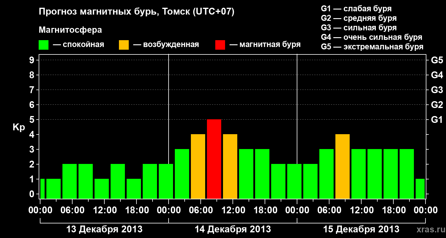 Прогноз магнитных бурь в Томске — 13 декабря 2013 года