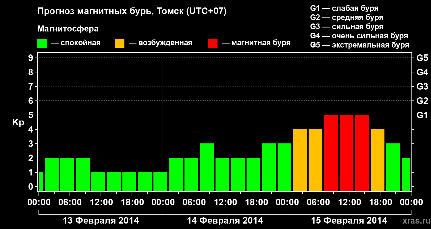 Прогноз магнитных бурь в Томске — 13 февраля 2014 года