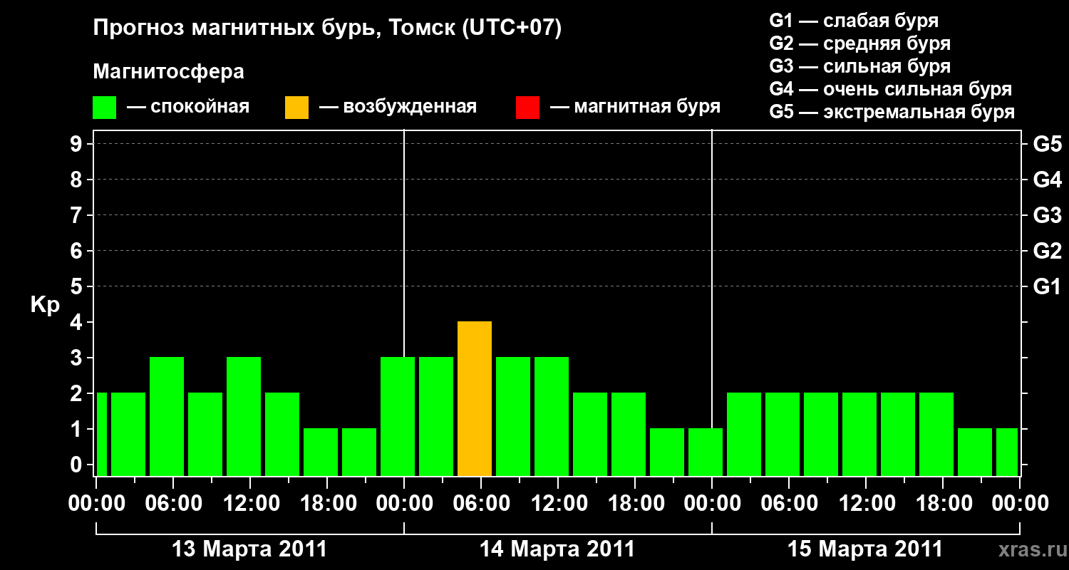 Прогноз магнитных бурь в Томске — 13 марта 2011 года