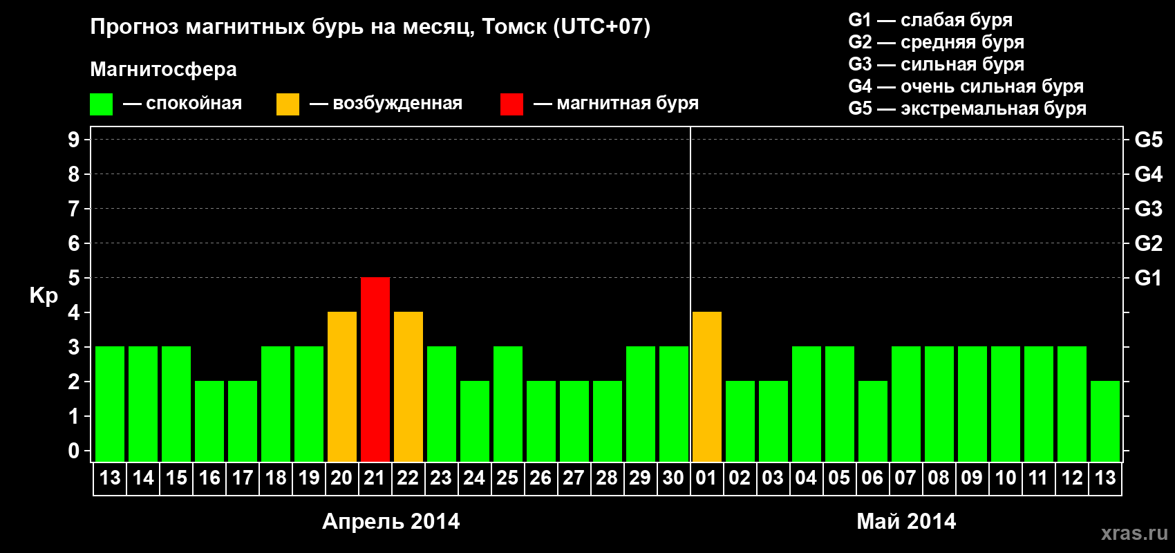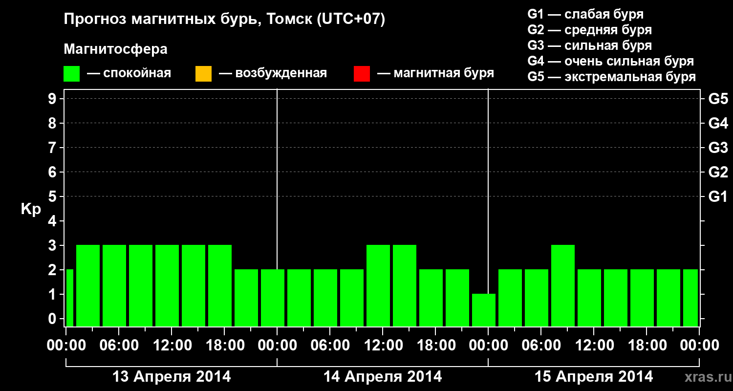 Прогноз магнитных бурь в Томске — 13 апреля 2014 года