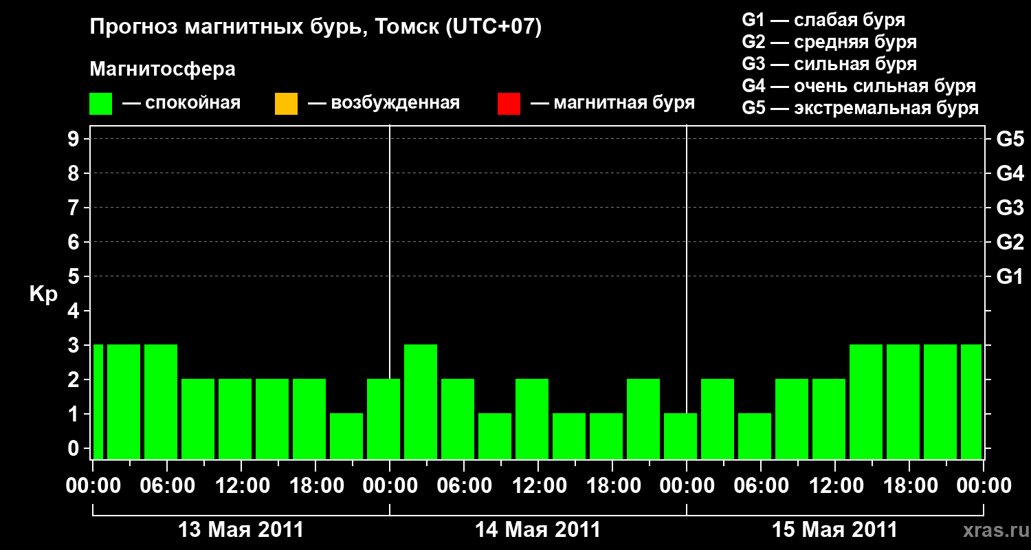 Прогноз магнитных бурь в Томске — 13 мая 2011 года