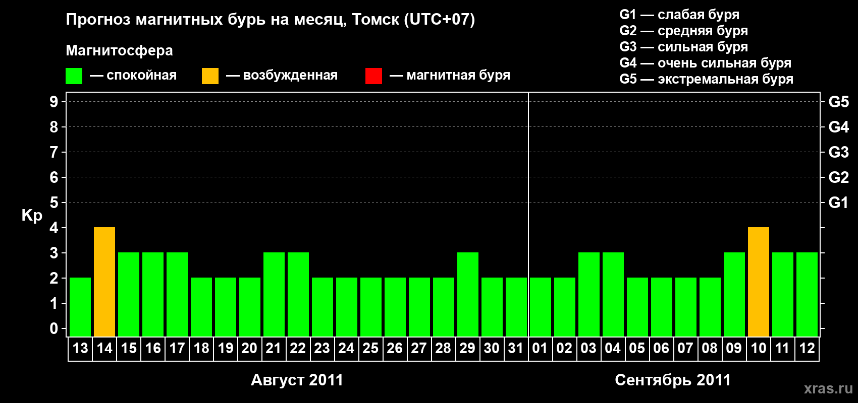 Прогноз магнитных бурь в Томске — 13 августа 2011 года