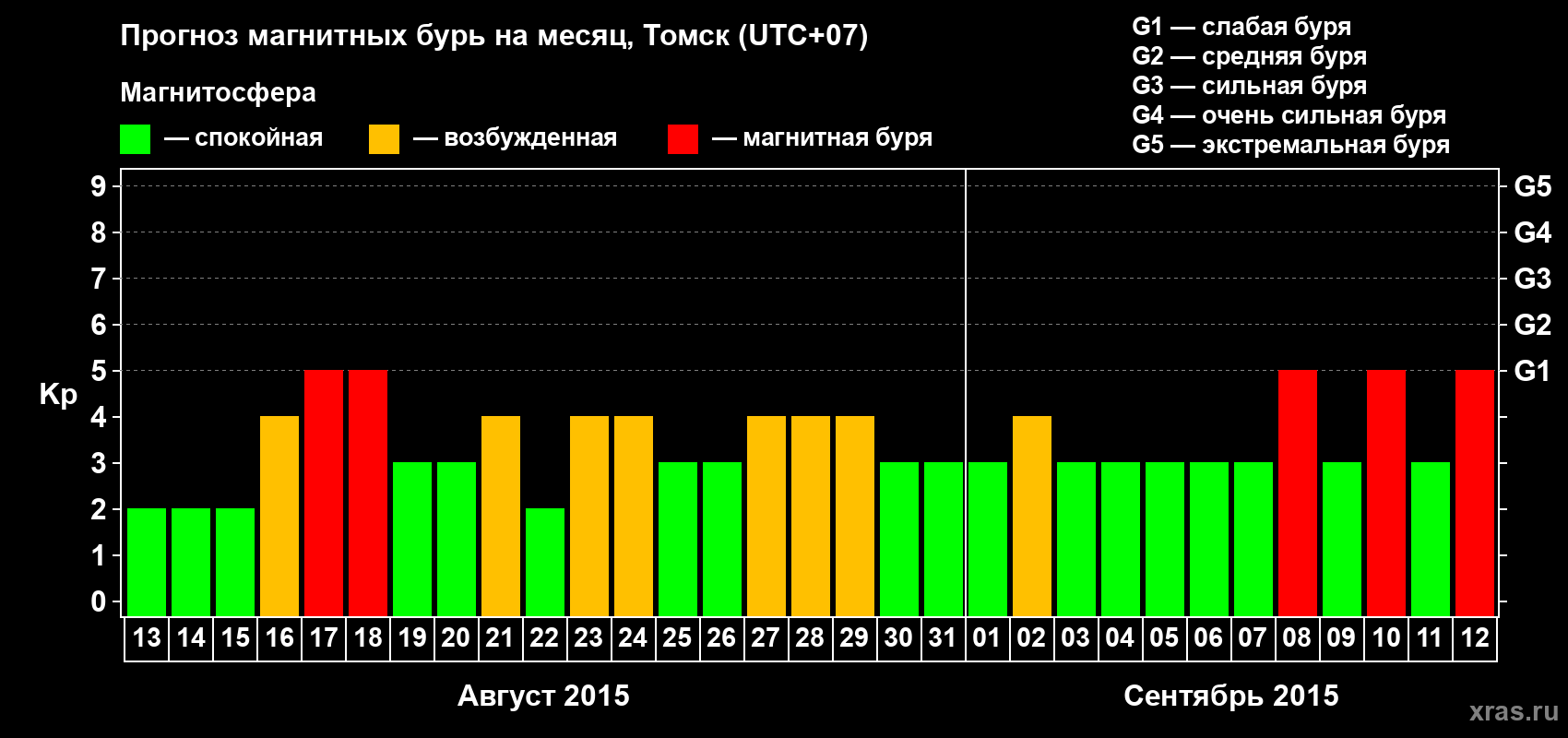 Прогноз магнитных бурь в Томске — 13 августа 2015 года