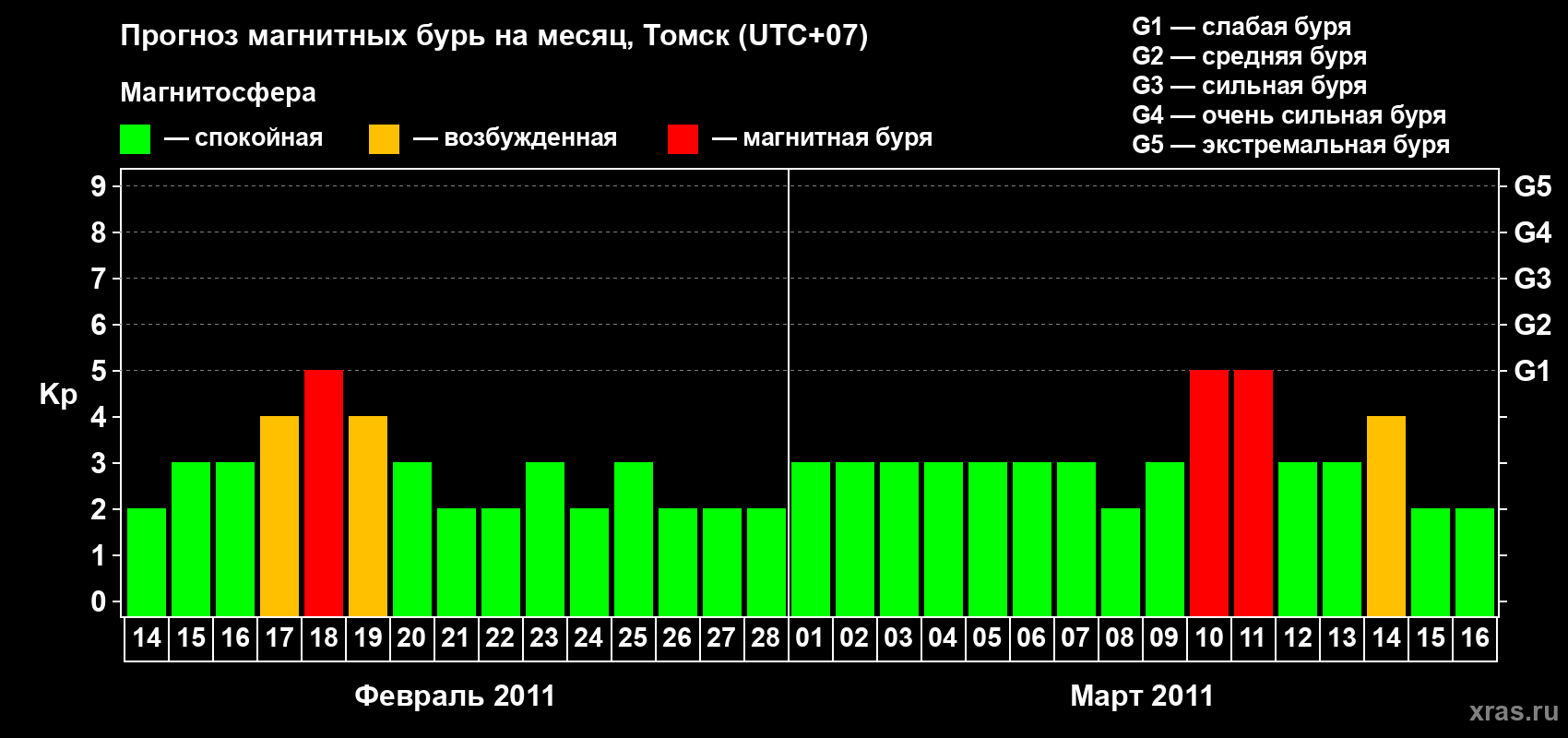 Прогноз магнитных бурь в Томске на 14 февраля 2011 года