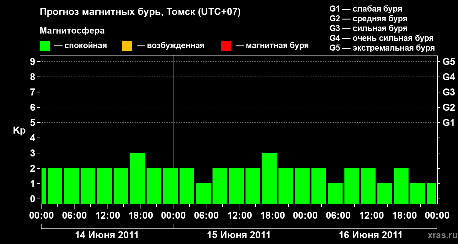 Прогноз магнитных бурь в Томске — 14 июня 2011 года