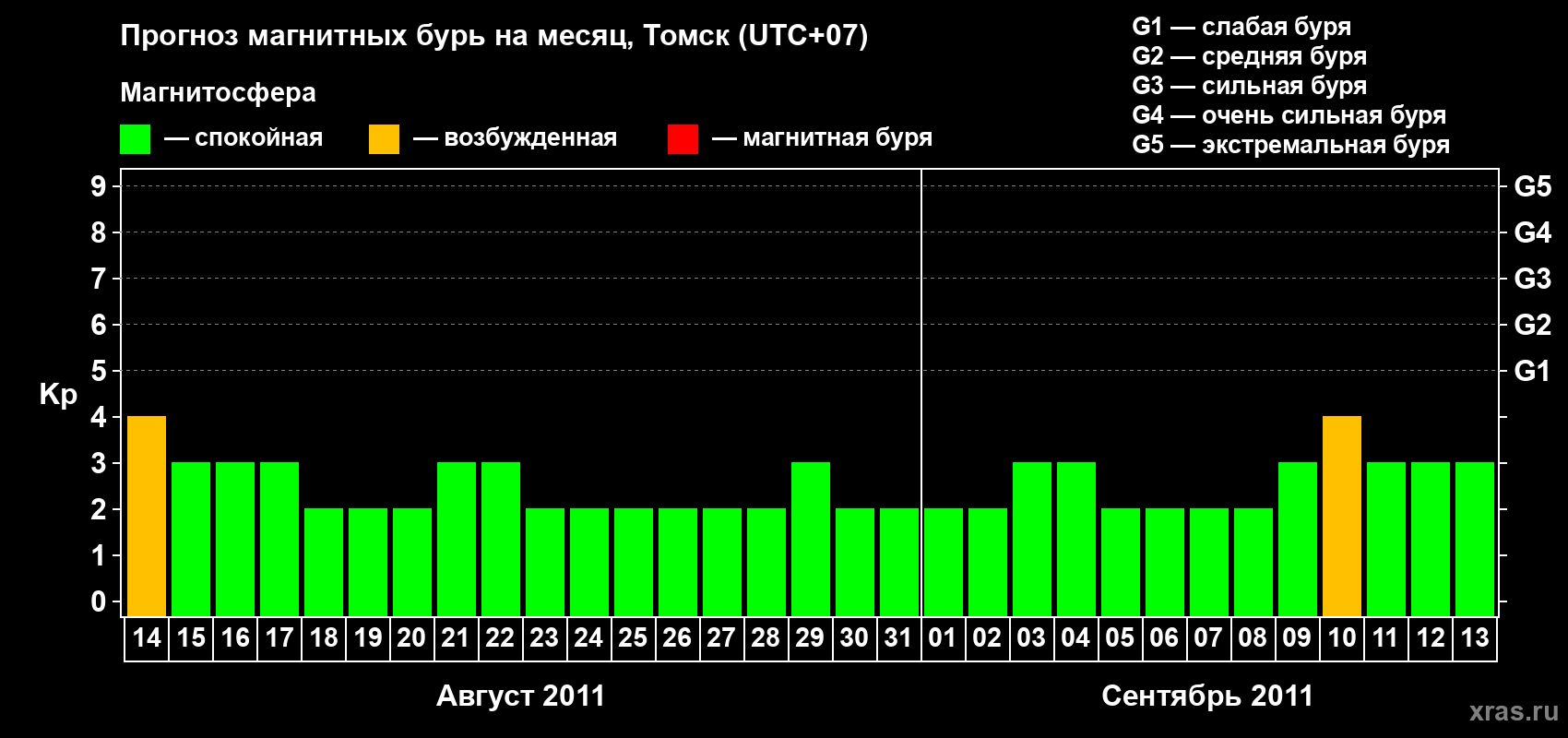 Прогноз магнитных бурь в Томске — 14 августа 2011 года