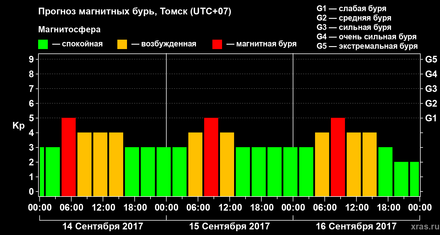 Прогноз магнитных бурь в Томске — 14 сентября 2017 года