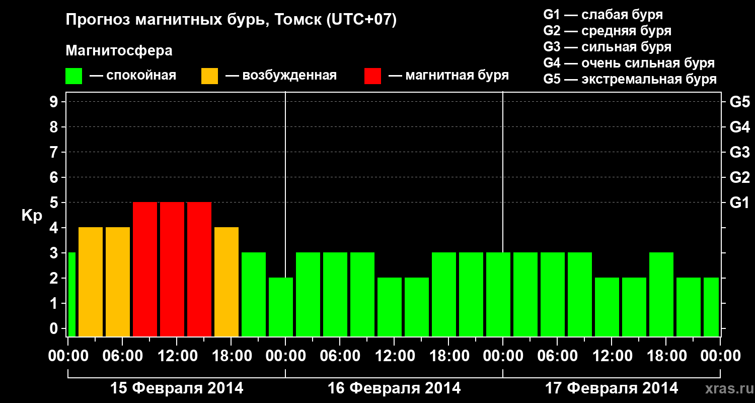 Прогноз магнитных бурь в Томске — 15 февраля 2014 года
