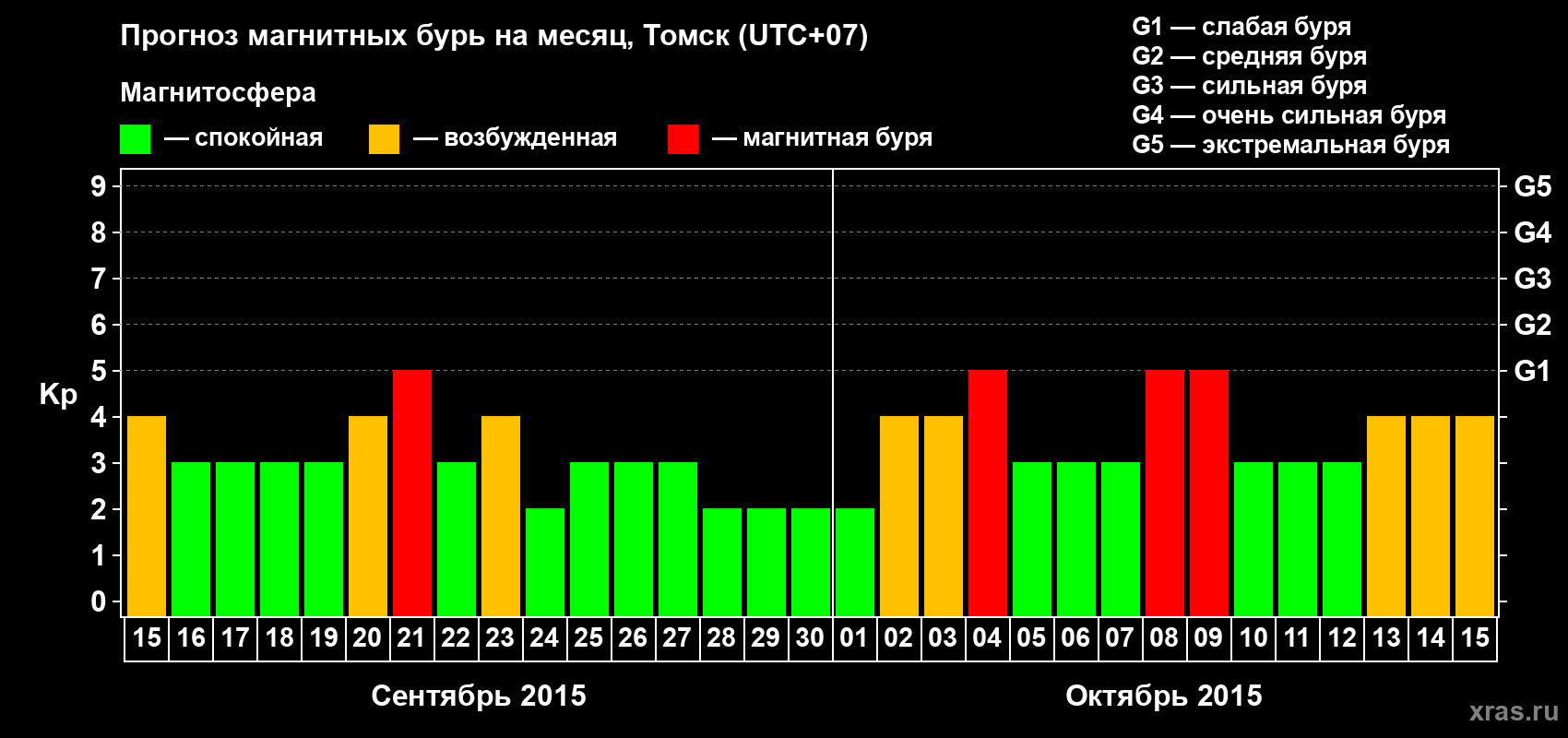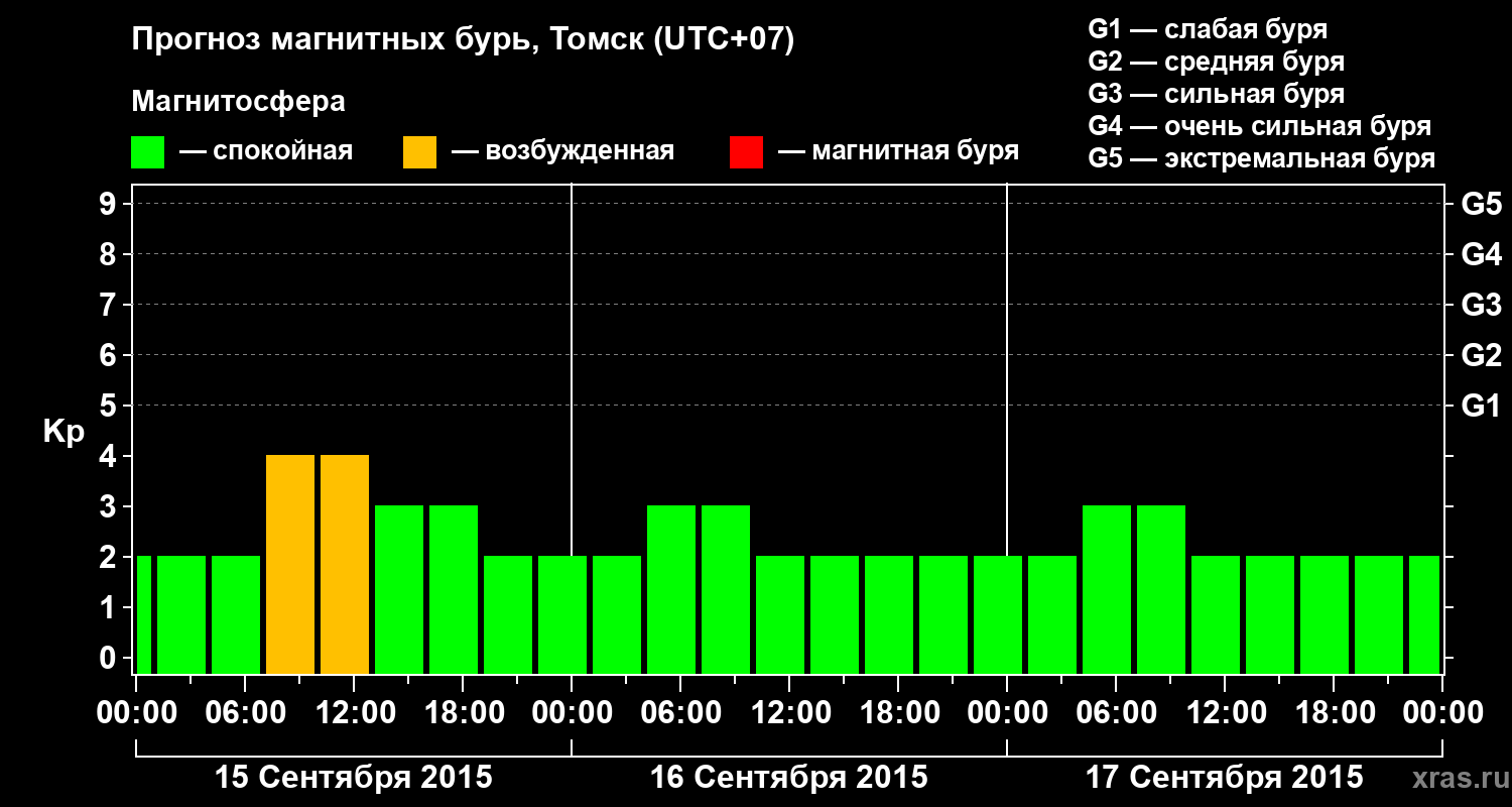 Прогноз магнитных бурь в Томске — 15 сентября 2015 года