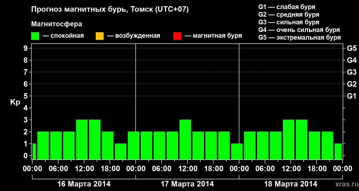Прогноз магнитных бурь в Томске — 16 марта 2014 года
