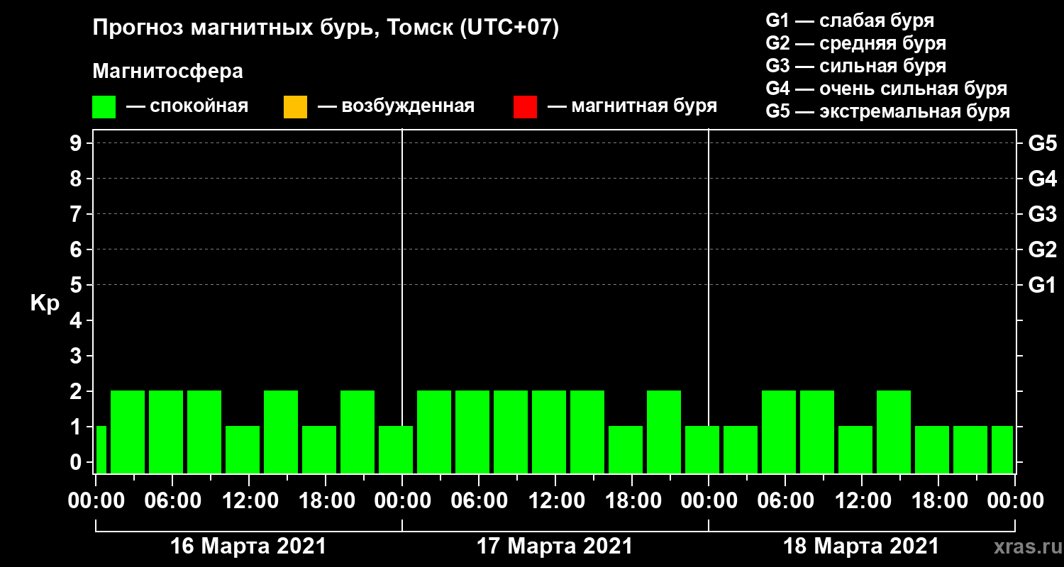Прогноз магнитных бурь в Томске — 16 марта 2021 года