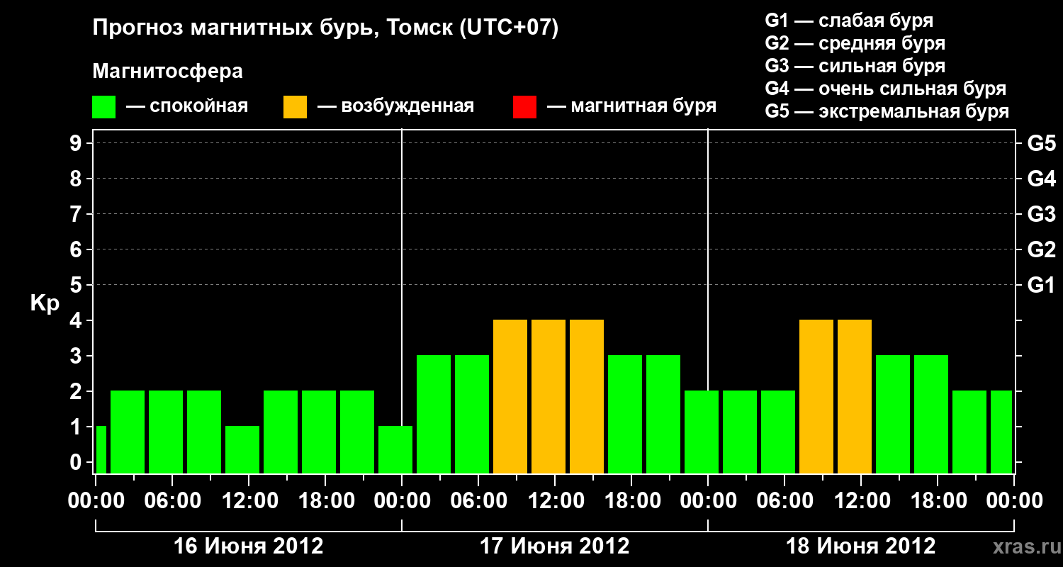 Прогноз магнитных бурь в Томске — 16 июня 2012 года