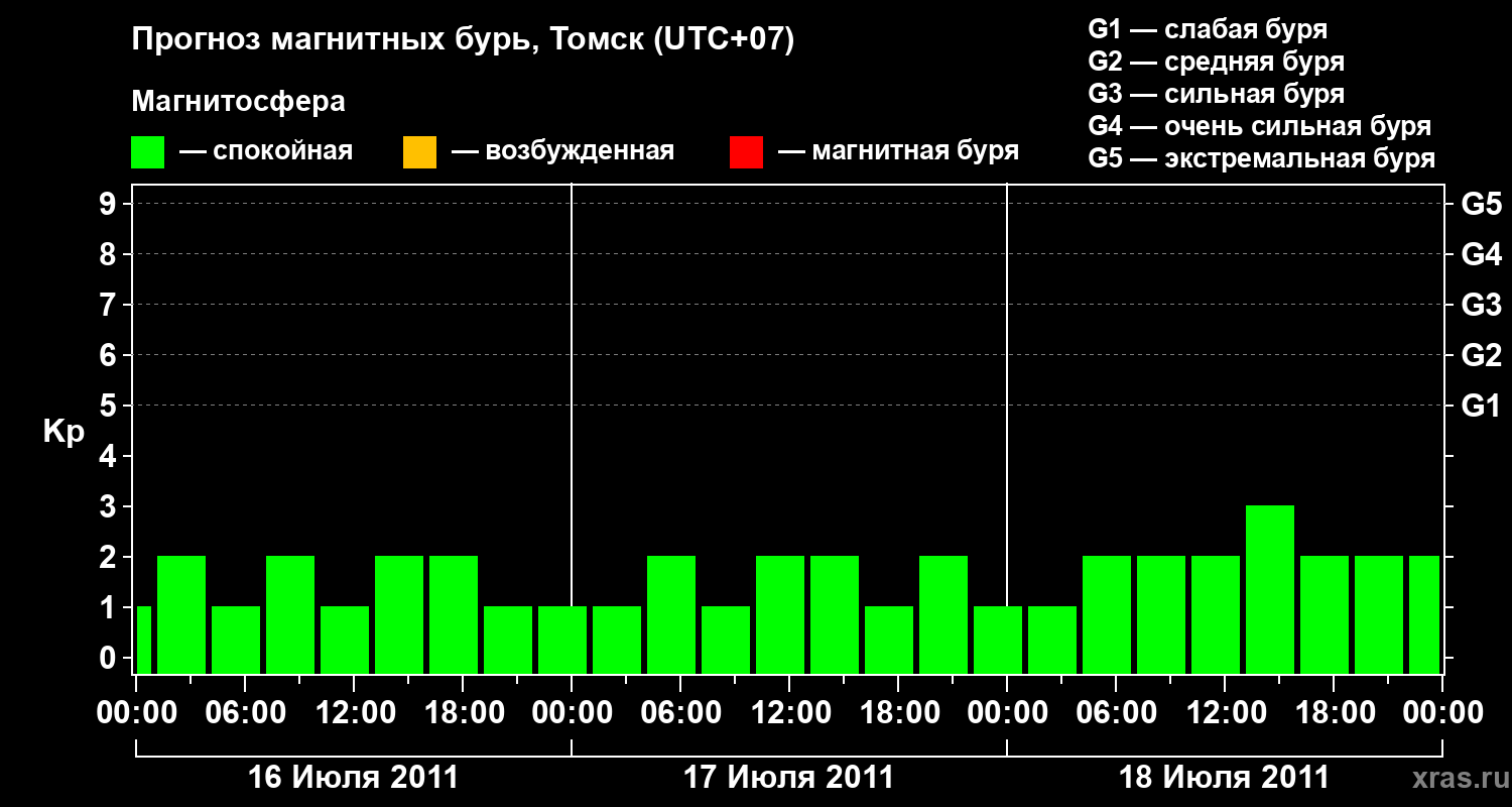 Прогноз магнитных бурь в Томске — 16 июля 2011 года