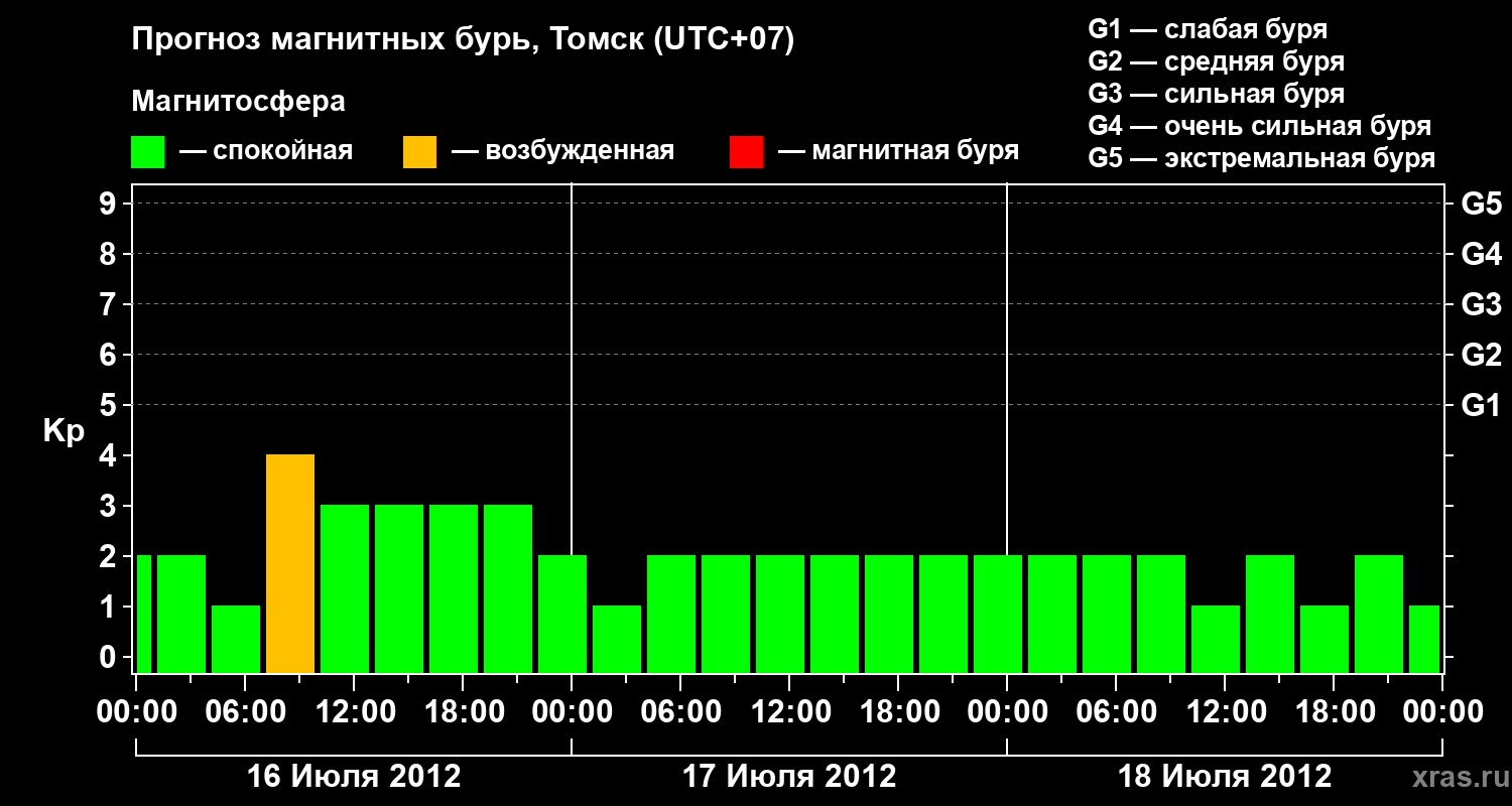 Прогноз магнитных бурь в Томске — 16 июля 2012 года