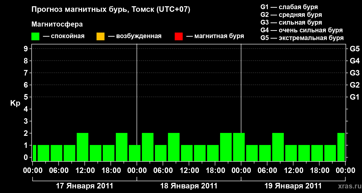 Прогноз магнитных бурь в Томске — 17 января 2011 года