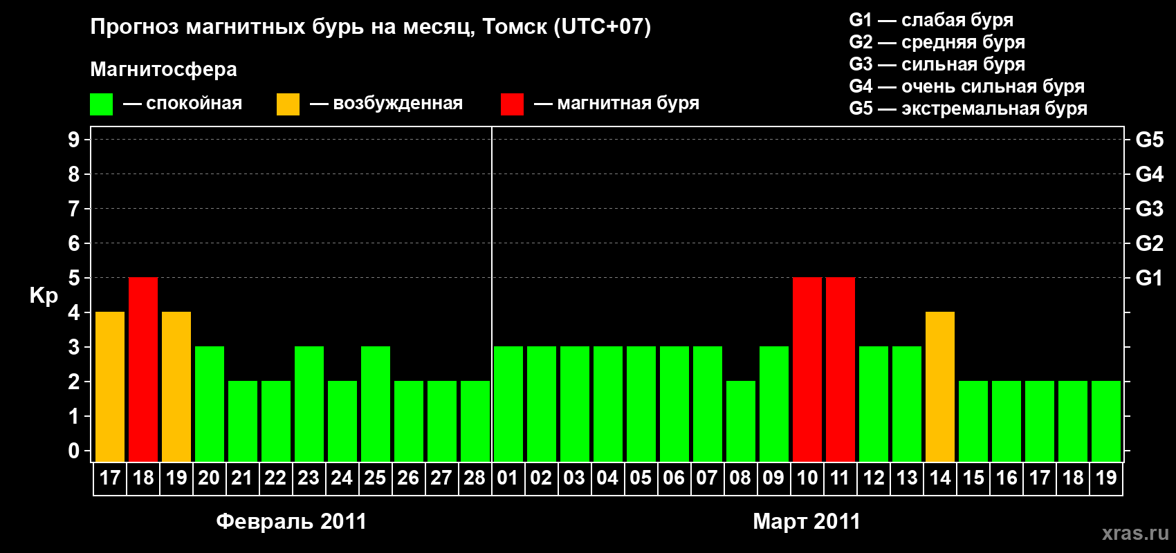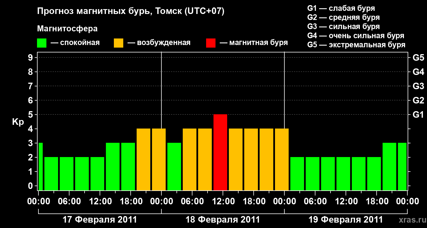 Прогноз магнитных бурь в Томске — 17 февраля 2011 года