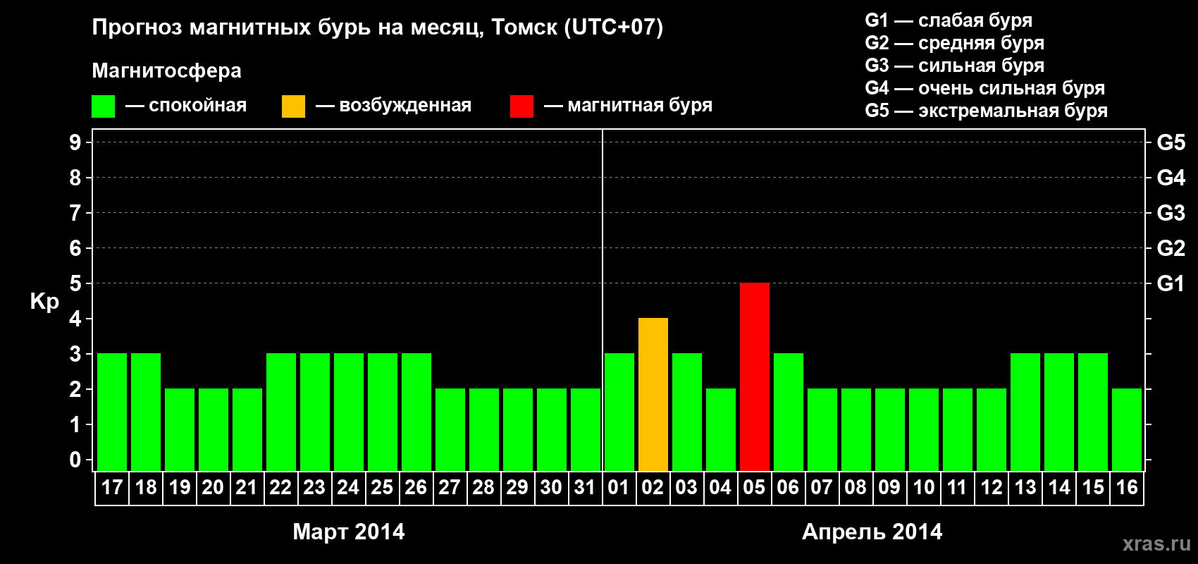 Прогноз магнитных бурь в Томске — 17 марта 2014 года
