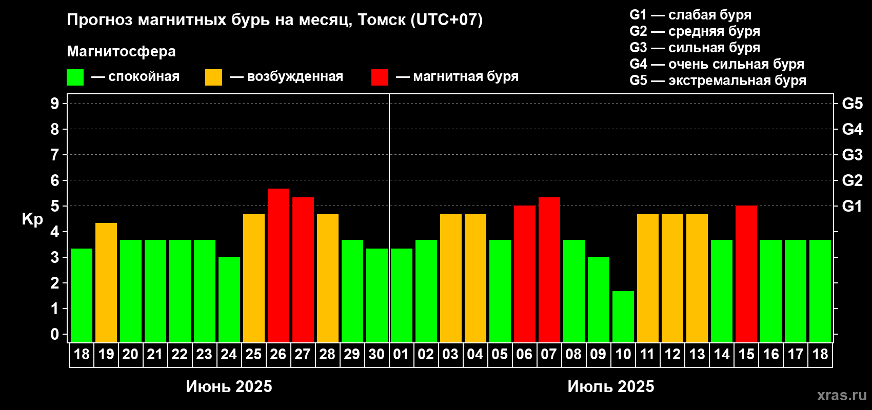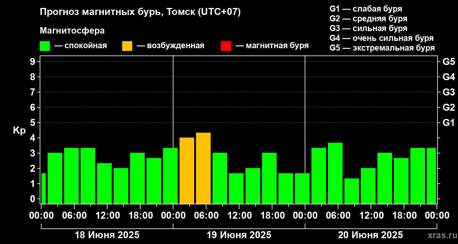 Прогноз магнитных бурь в Томске — 18 июня 2025 года