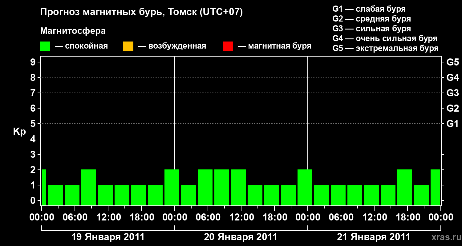 Прогноз магнитных бурь в Томске — 19 января 2011 года