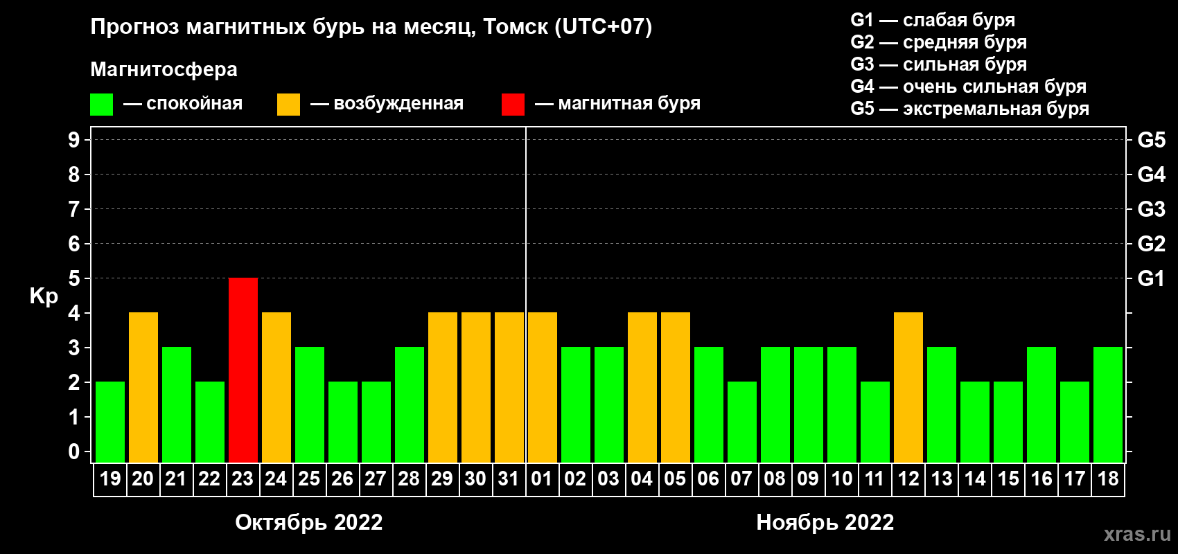 Прогноз магнитных бурь в Томске — 19 октября 2022 года