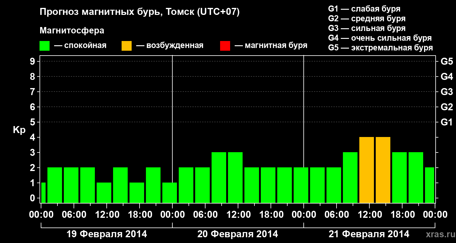 Прогноз магнитных бурь в Томске — 19 февраля 2014 года