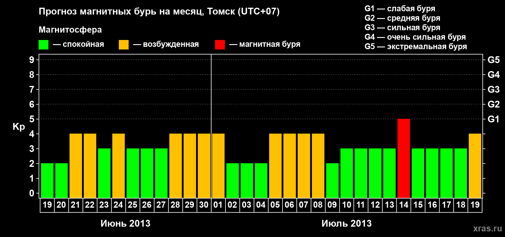 Прогноз магнитных бурь в Томске — 19 июня 2013 года