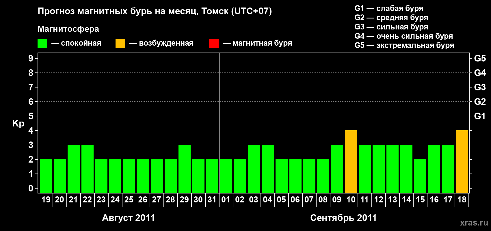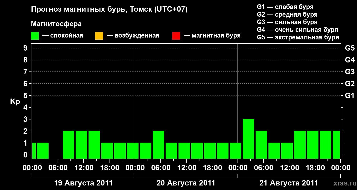 Прогноз магнитных бурь в Томске — 19 августа 2011 года