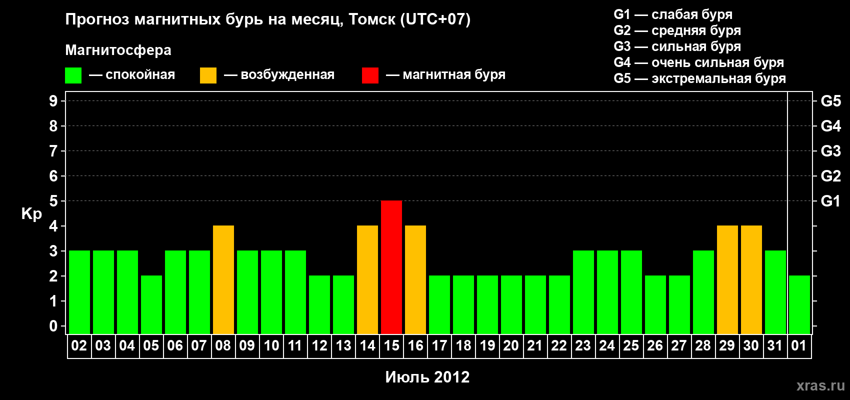 Прогноз магнитных бурь в Томске — 2 июля 2012 года