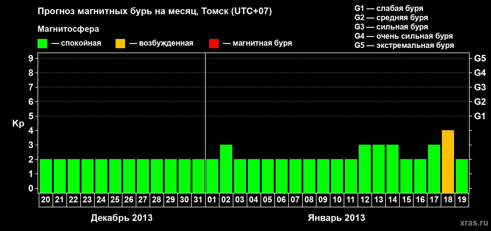 Прогноз магнитных бурь в Томске — 20 декабря 2012 года