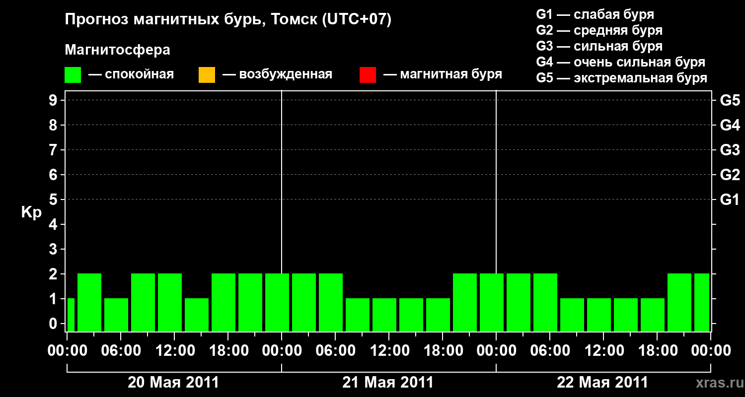 Прогноз магнитных бурь в Томске — 20 мая 2011 года