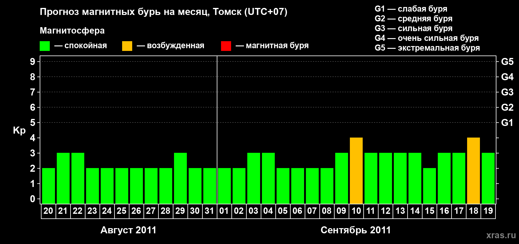 Прогноз магнитных бурь в Томске — 20 августа 2011 года