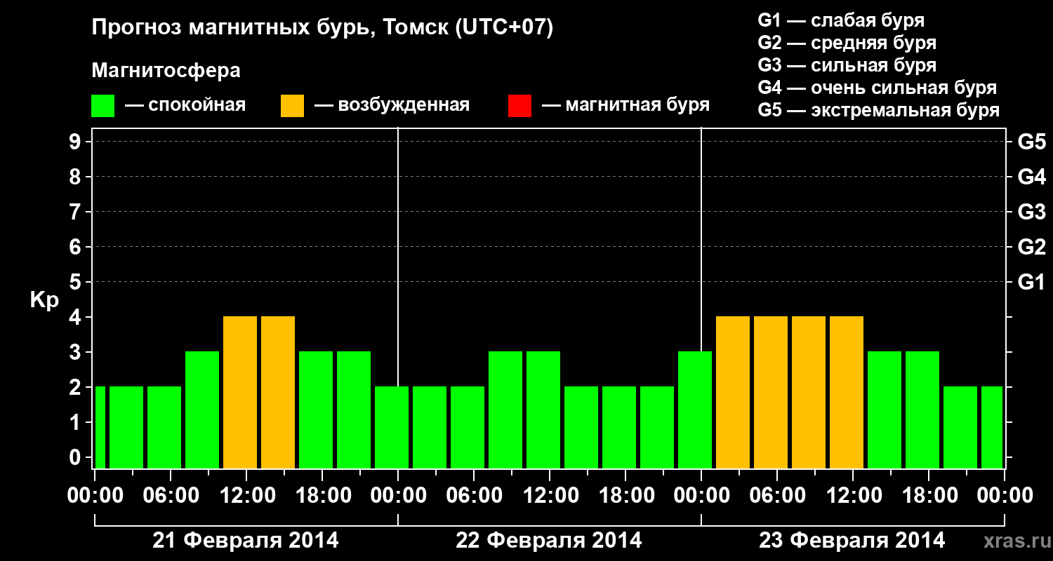 Прогноз магнитных бурь в Томске — 21 февраля 2014 года