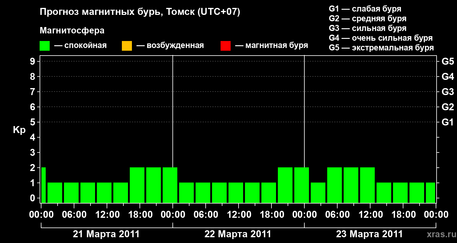 Прогноз магнитных бурь в Томске — 21 марта 2011 года