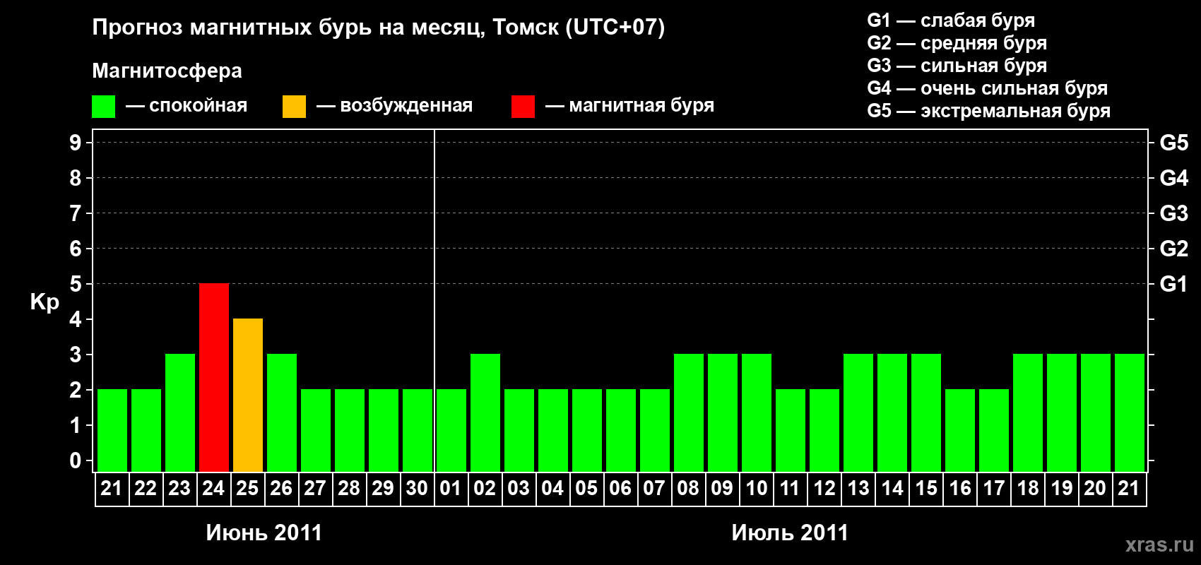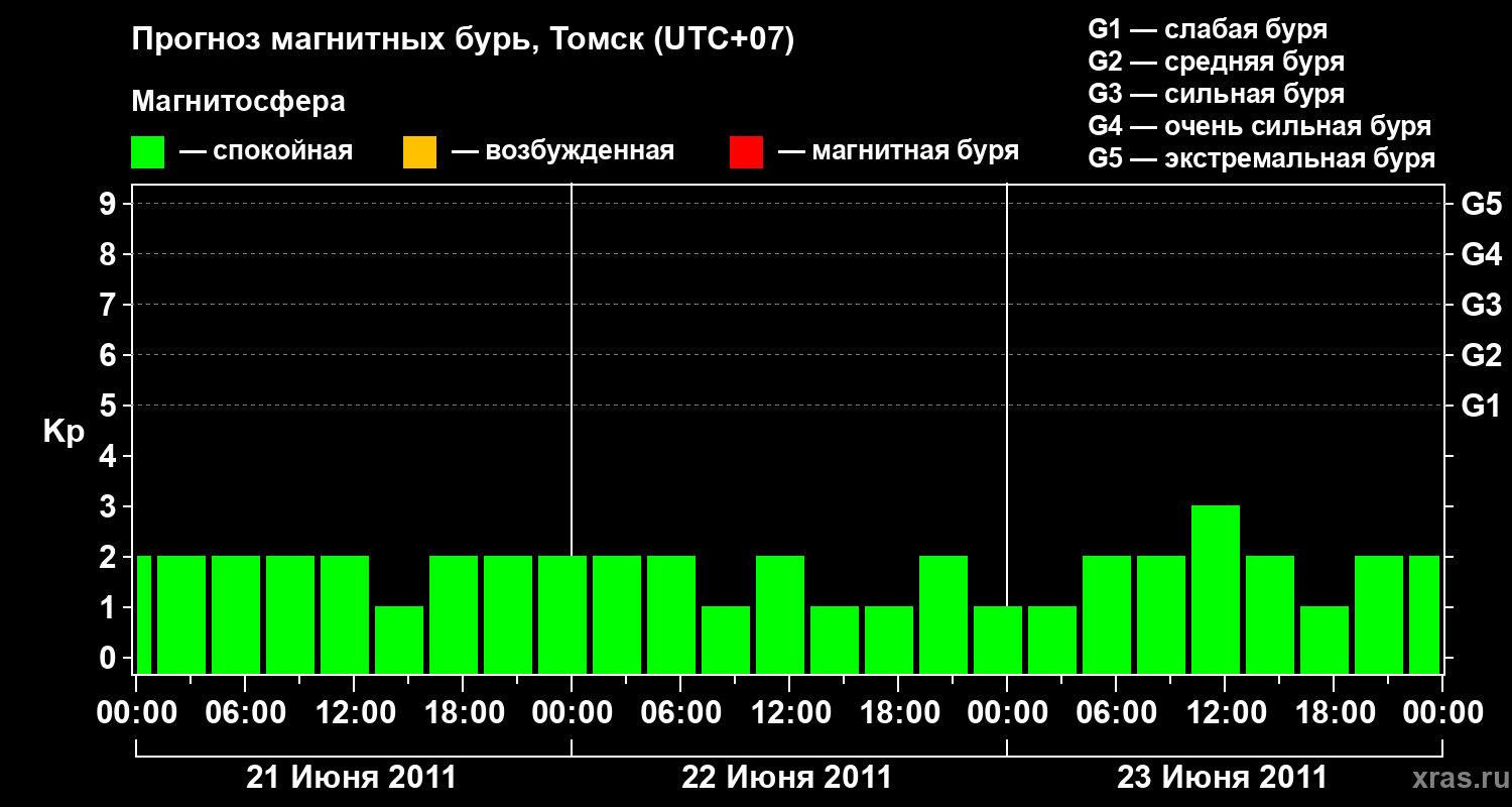 Прогноз магнитных бурь в Томске — 21 июня 2011 года