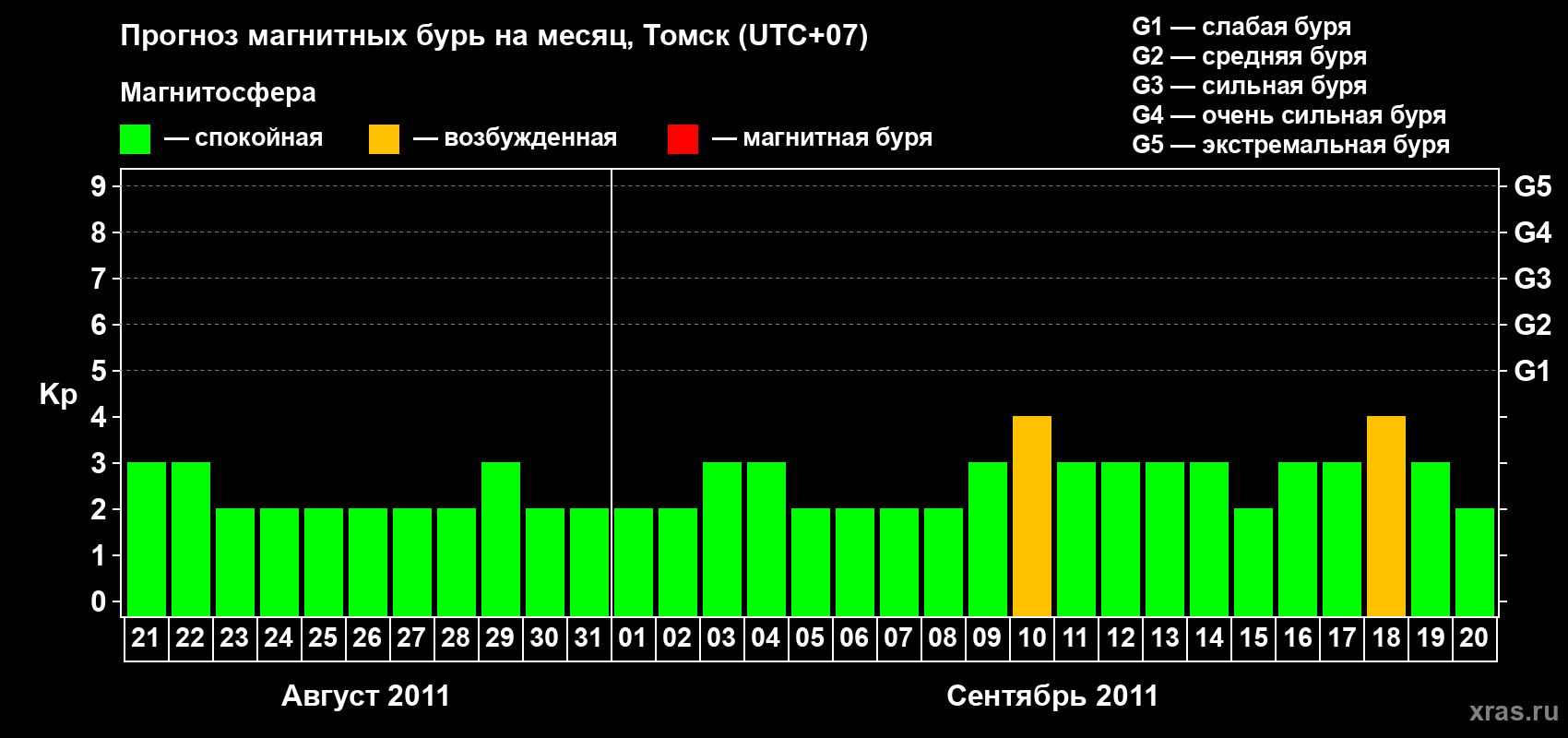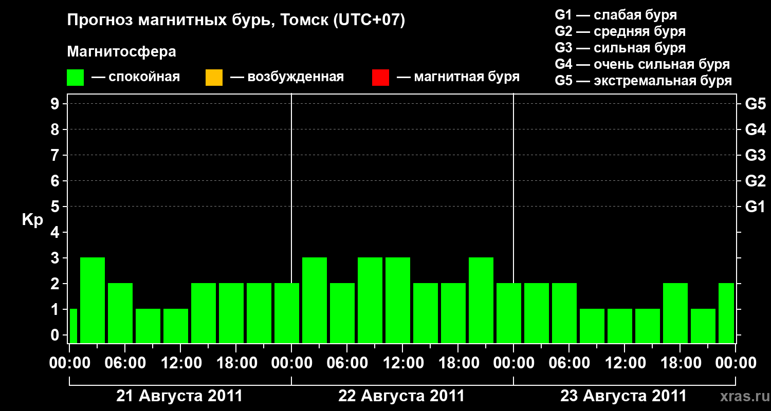 Прогноз магнитных бурь в Томске — 21 августа 2011 года